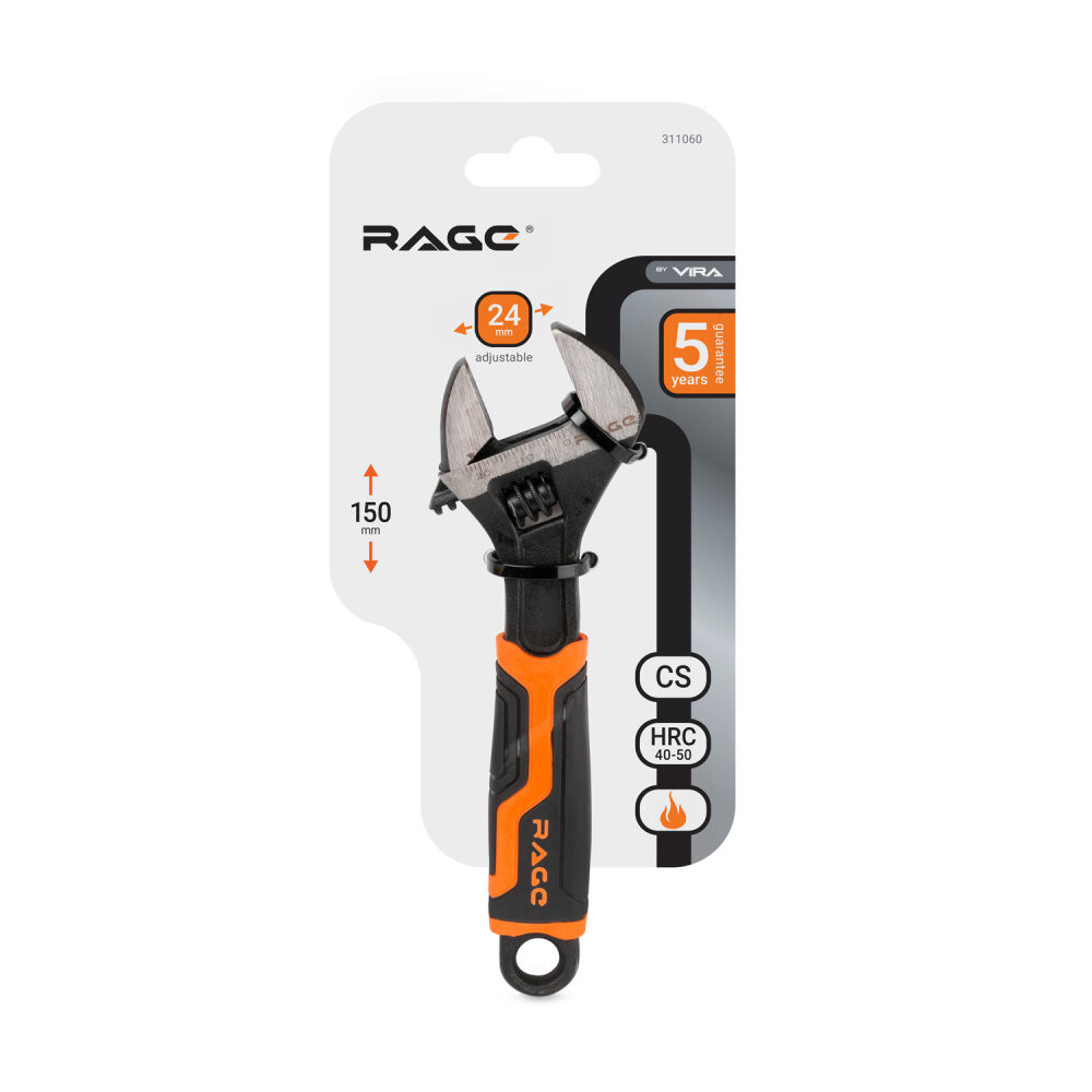 Ключ разводной усиленный 150 мм зев до 24 мм (Rage) 311060