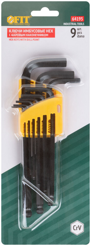 Ключи шестигранные CrV средние с шаром (1.5-10 мм) 9 шт (FIT) 64195