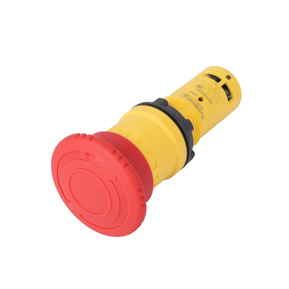 Полное описание товара Кнопка аварийного останова SB7 моноблочная 22мм красная, ?40, повернуть для возвр, пластик, 1НО+1НЗ (Systeme Electric) SB7ES545P