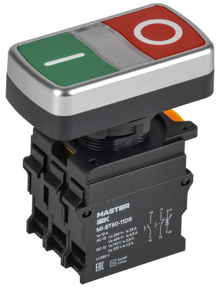 Полное описание товара Кнопка I-O с подсветкой d=22мм 1NO+1NC MASTER (IEK) MI-BT60-11DR-3-11-K51