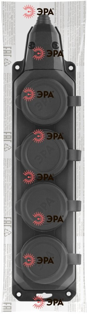 Полное описание товара Колодка каучуковая с/з 4 гнезда 16A IP44 черная K-4e-B-IP44 (ЭРА) Б0044546