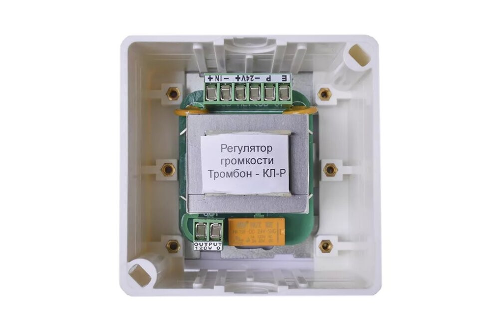 Коммутатор линии регулируемый предназначен для переключения одного или нескольких громкоговорителей (оповещателей) между линиями оповещения и звукового вещания с возможностью регулировки громкости. Переключение выполняется дистанционно управляющим напряжением 24 В.