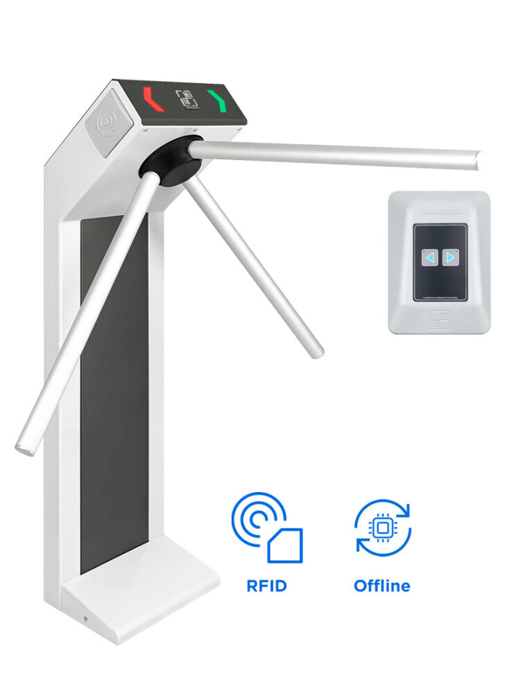 Комплект компактной автономной проходной ''STR-01AEC'' предназначен для простой организации контроля доступа на объекте. Проход осуществляется по персональным идентификаторам через встроенные бесконтактные считыватели формата EM-Marin. Помимо идентификаторов возможно подключение пульта дистанционного управления. Автономный контроллер CBU-260 позволяет записывать в свою внутреннюю память до 5 000 идентификаторов пользователей. Турникет выполнен из стали с полимерным покрытием толщиной от 2-х до 3-х мм. Надежный и долговечный нормально-открытый механизм c гидравлическим демпфером и блоком оптических датчиков позволяет добиться максимального комфорта и плавности поворота преграждающих планок. В состав комплекта входит компактная автономная проходная ''STR-01AE'', комплект преграждающих планок Антипаника ''PPA-06R'', проводной пульт управления турникетом ''TW-02''.