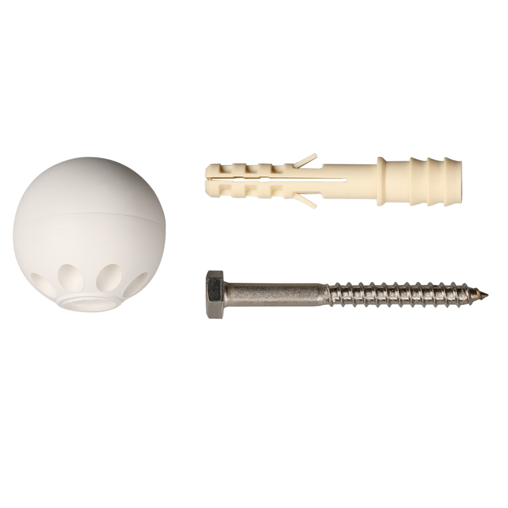 Ограничитель выполняет функцию упора, ограничивая ход двери и предотвращая повреждение стен и двери. Комплект состоит из нейлонового дюбеля, нержавеющего шурупа и декоративного ограничителя.