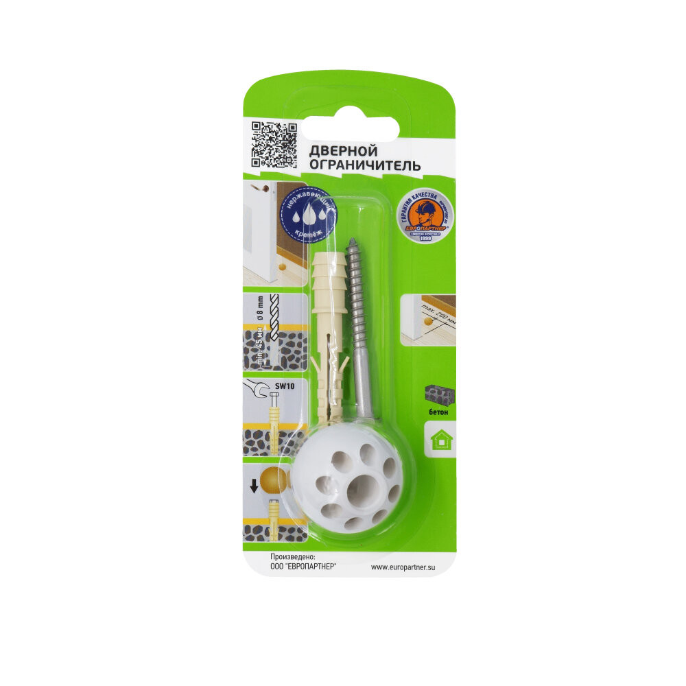 Комплект дверного ограничителя,белый, блистер (Европартнер) 87573
