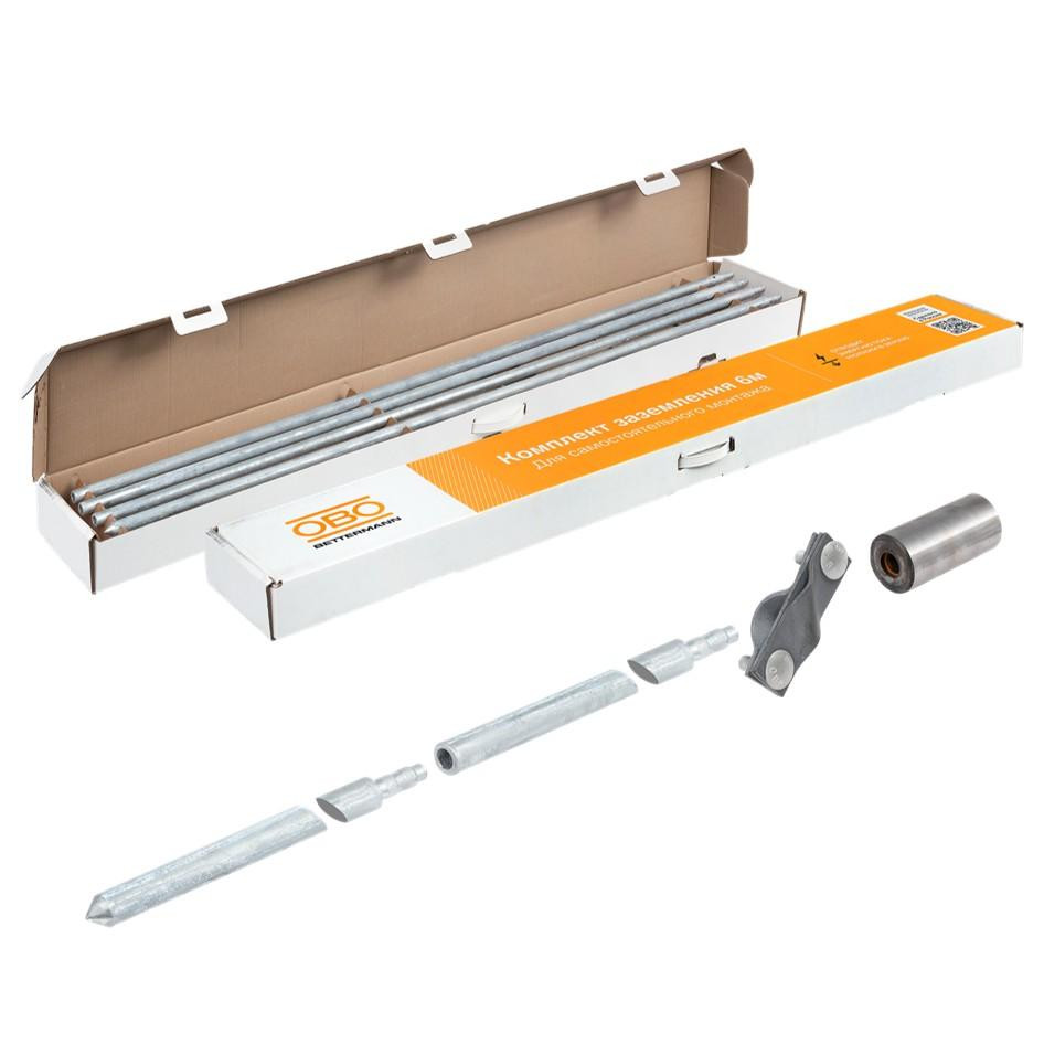 - Преимущества: Комплект универсален и подойдет для монтажа даже в стесненных условиях, например, в подвале дома|Глубина заземления стержней составляет 6 м|Не требуется токопроводящей пасты за счет безмуфтового соединения|Комплект адаптирован для монтажа вибромолотом|Цинковое покрытие стержней заземления ОБО превышает требования ПУЭ и обеспечивает срок эксплуатации более 50 лет