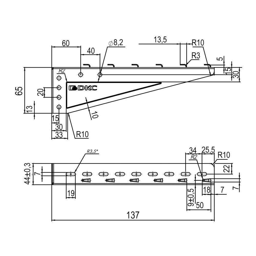 Полное описание товара Консоль легкая для проволочного лотка основанием 100 мм (DKC) FBL3010