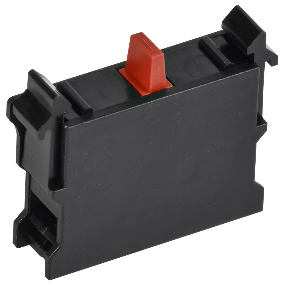 Нормально закрытый (NC \ размыкающий) контактный блок обеспечивает увеличение количества коммутационных процессов, используется совместно с кнопками управления и переключателями серии MASTER IEK. Для удобства идентификации и использования блок контакта нормально открытый имеет зелёный толкатель, а нормально закрытый - красный толкатель.
