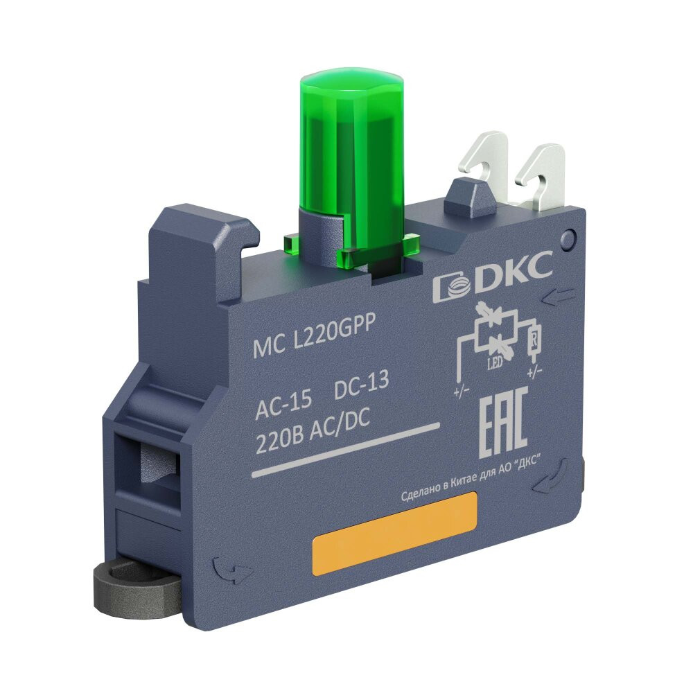 Контактный блок с клеммным безвинтовым зажимом со светодиодом на 220В, зеленый (DKC) MC-L220GPP