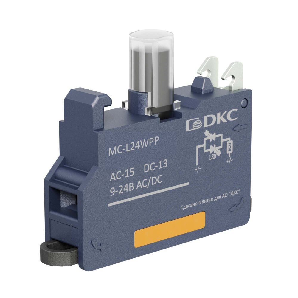 Контактный блок с клеммным безвинтовым зажимом со светодиодом на 9-24В, белый (DKC) MC-L24WPP