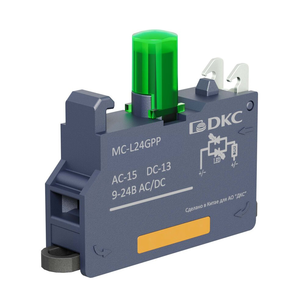 Контактный блок с клеммным безвинтовым зажимом со светодиодом на 9-24В, зеленый (DKC) MC-L24GPP