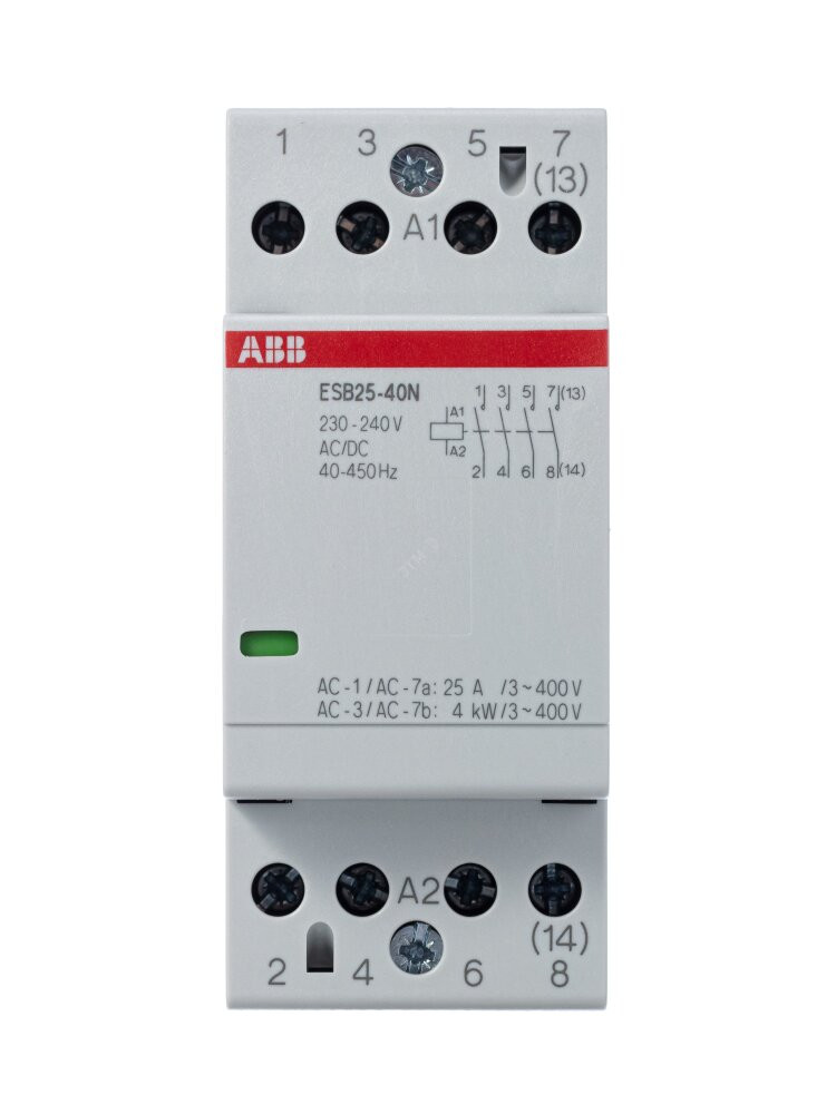 Полное описание товара Контактор модульный (25А АС-1, 4НО), катушка 230В AC/DC (ABB) 1SAE231111R0640