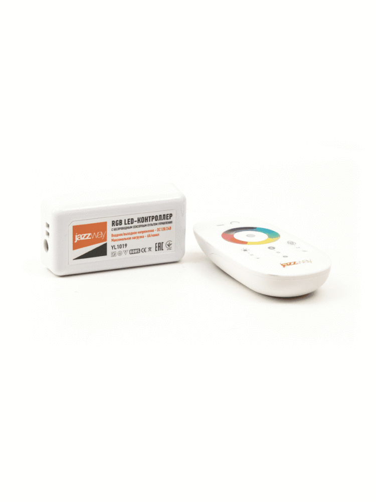 Полное описание товара Контроллер к LED ленте RGB 4000RF 216/432Вт 12/24В сенсор белый (JazzWay) 1007957