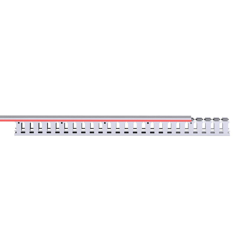 - Преимущества: Совместимость с дополнительными аксессуарами для надежного крепления в шкафу|Повышенная пожаробезопасность за счет негорючего материала|Специальная геометрия перфорации обеспечивает удобство фиксации кабелей различного диаметра|Возможность эксплуатации при низких температурах