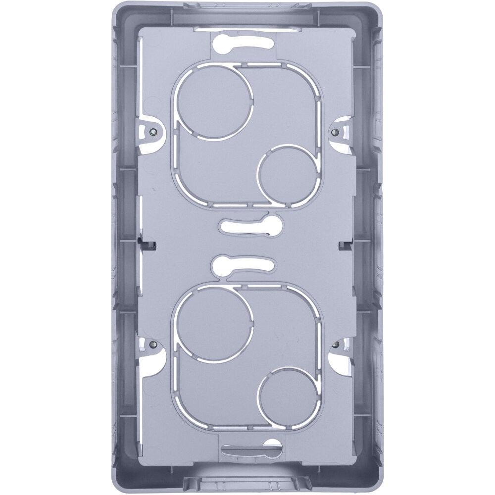Коробка для накладного монтажа Inspiria, 2 поста, цвет ''Алюминий''. Коробка предназначена для накладного монтажа механизмов серии Inspiria и позволяет установить 2 механизма из данной коллекции. Конструкция коробки позволяет подключить провода наиболее удобным способом.