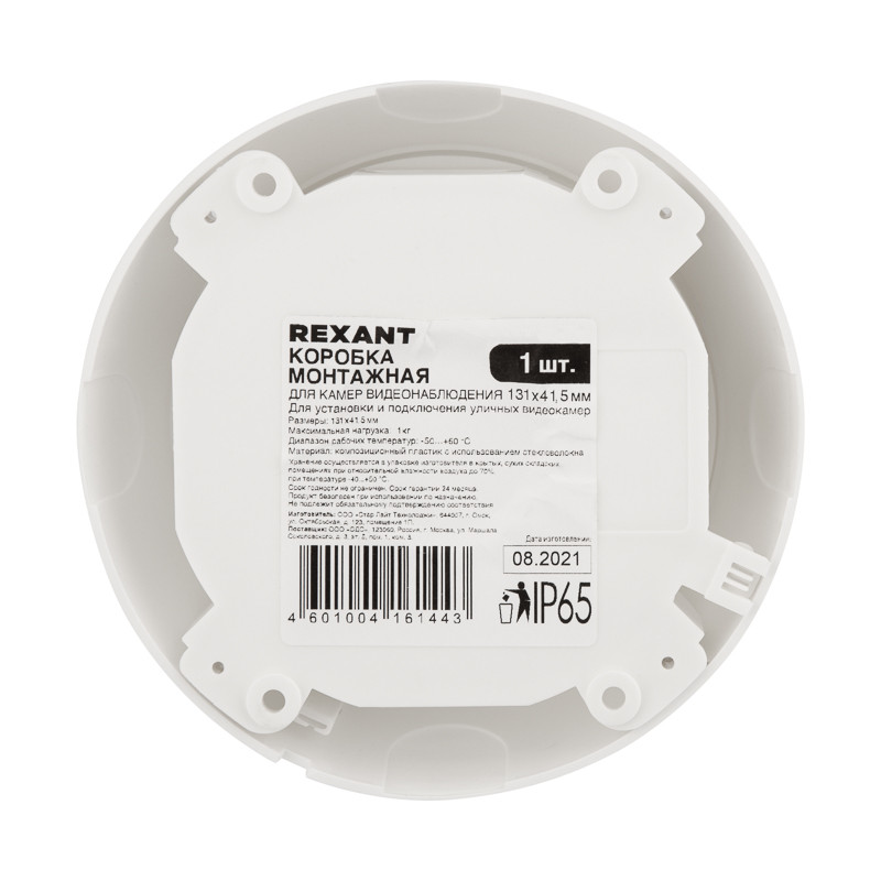 Полное описание товара Коробка монтажная для камер видеонаблюдения 120х50 мм, (REXANT) 28-4003