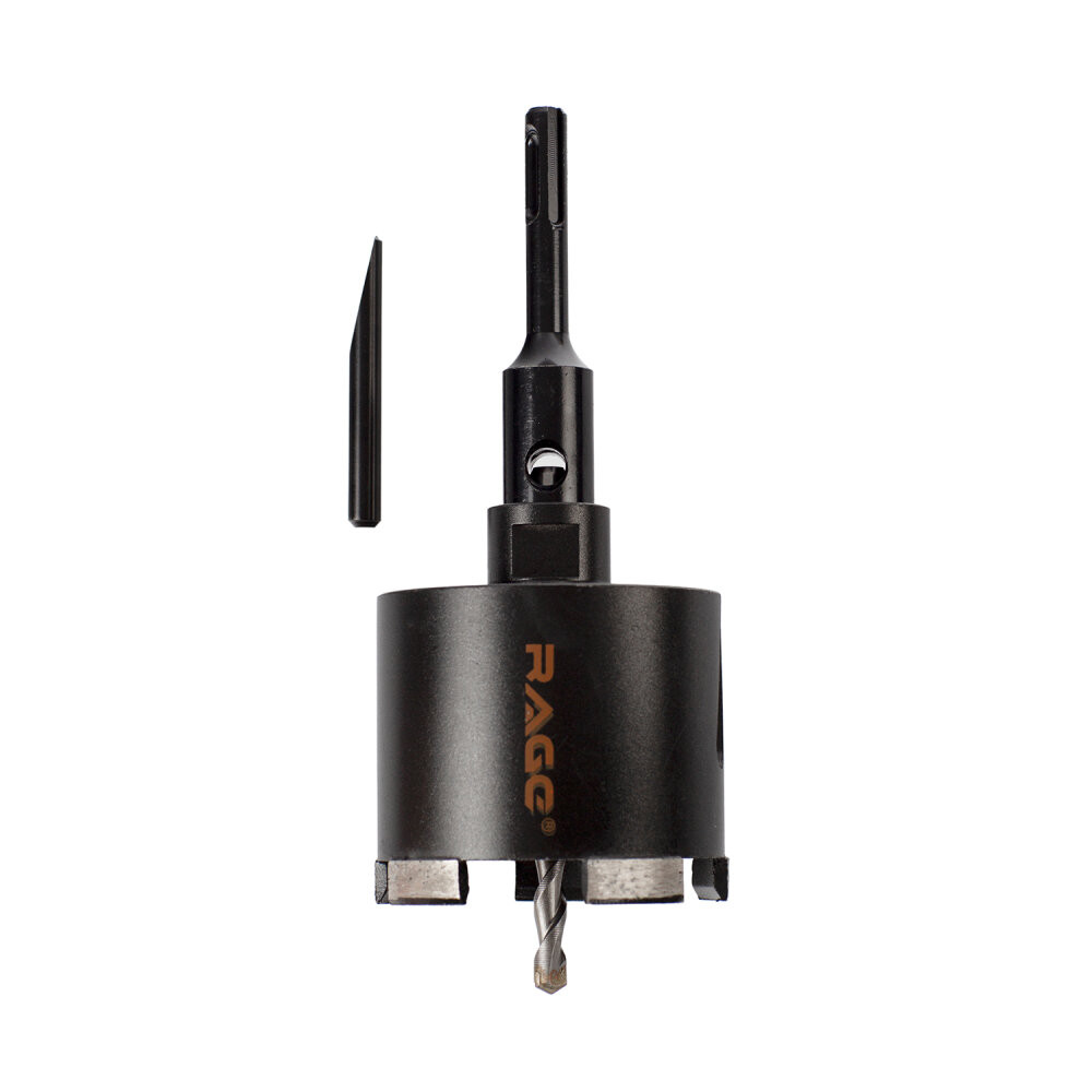 Данная коронка предназначена для работы с помощью перфоратора в безударном режиме в армированном бетоне (максимальный диаметр арматуры 22 мм), бетоне, кирпиче, силикатном кирпиче и камне. Центрирующее сверло помогает обеспечить точное позиционирование и сверлить без отклонений. Увеличенное количество сегментов (5шт.) способствует повышению скорости сверления и делает коронку более устойчивой к механическому разрушению, т.к. снижает возможность удара о армирующие элементы. В конструкции предусмотрены заостренные зубцы для быстрого вхождения в материал и точного расположения отверстий. При работе с водным охлаждением удается избавиться от шлама и получить ровный рез. Также в коронке предусмотрены компенсационные отверстия, которые позволяют погасить вибрацию, значительно снизить уровень шума при работе и способствуют быстрому охлаждению инструмента.