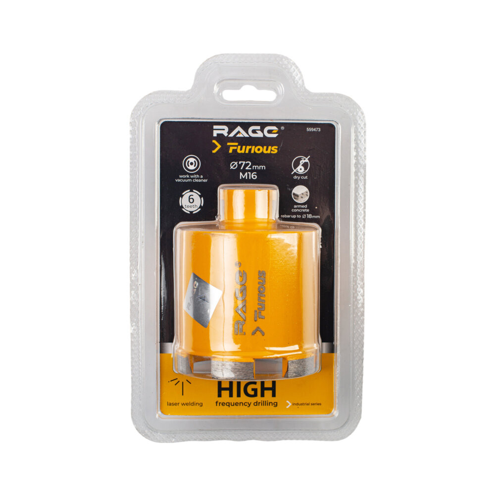 Полное описание товара Коронка алмазная по бетону с микроударом для подрозетников 72 мм с верхним пылеотводом (Rage Furious) 559473