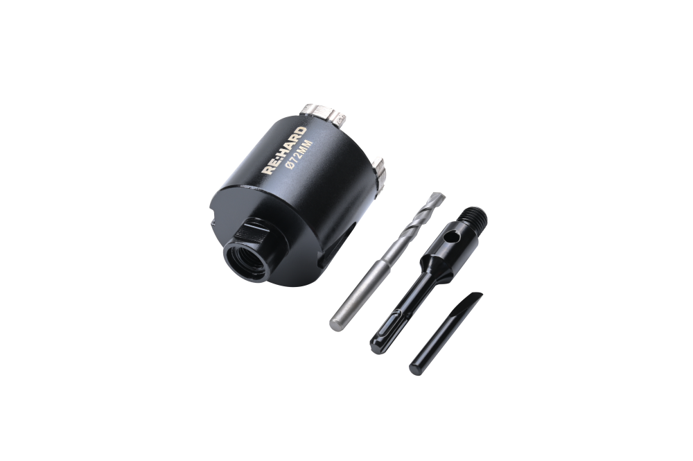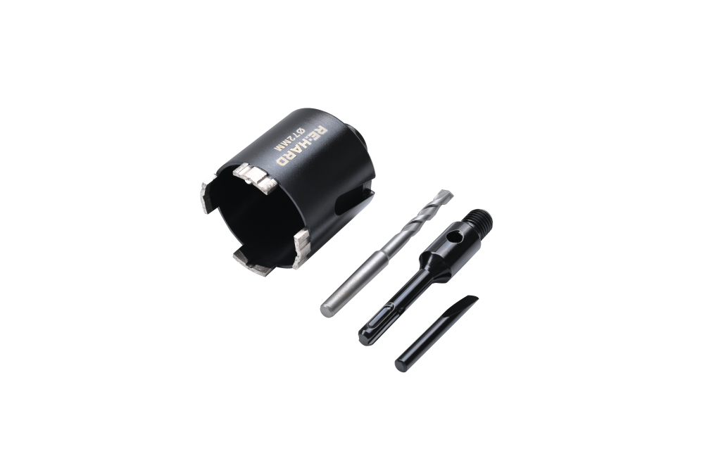 Алмазные коронки RE HARD SDS-PLUS предназначены для быстрого и точного сверления отверстий в бетоне, кирпиче и других плотных строительных материалах. Оснащены зубьями с алмазным напылением, обеспечивающим высокую износостойкость и чистый рез без сколов. Доступны в диаметрах 55, 68, 72, 82 мм. Подходят для дрелей и перфораторов с системой SDS-PLUS. Глубина сверления – до 62 мм.