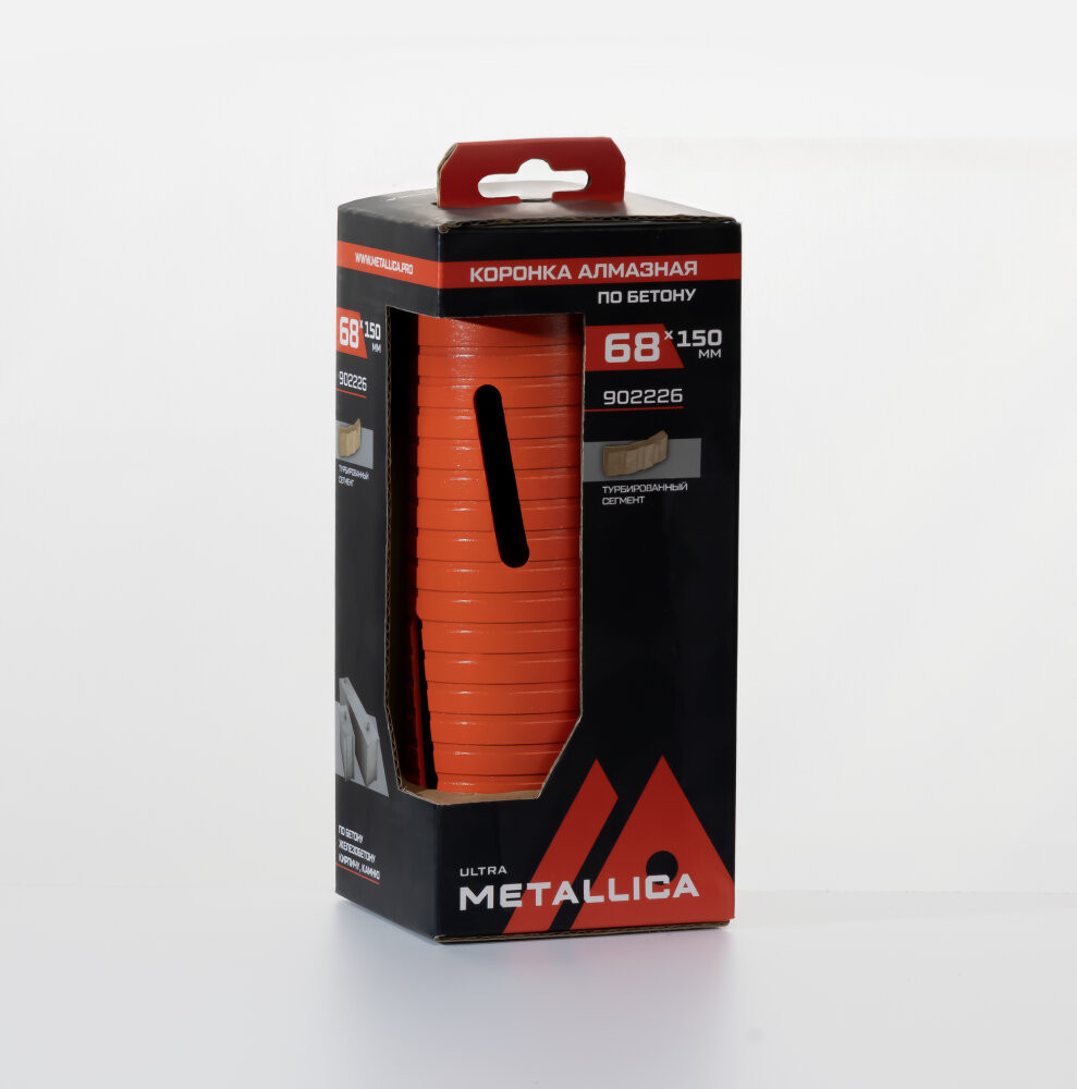 Полное описание товара Коронка алмазная сегментная удлин. 68x150 мм, М16, без хвостовика, по бетону (METALLICA) 902226