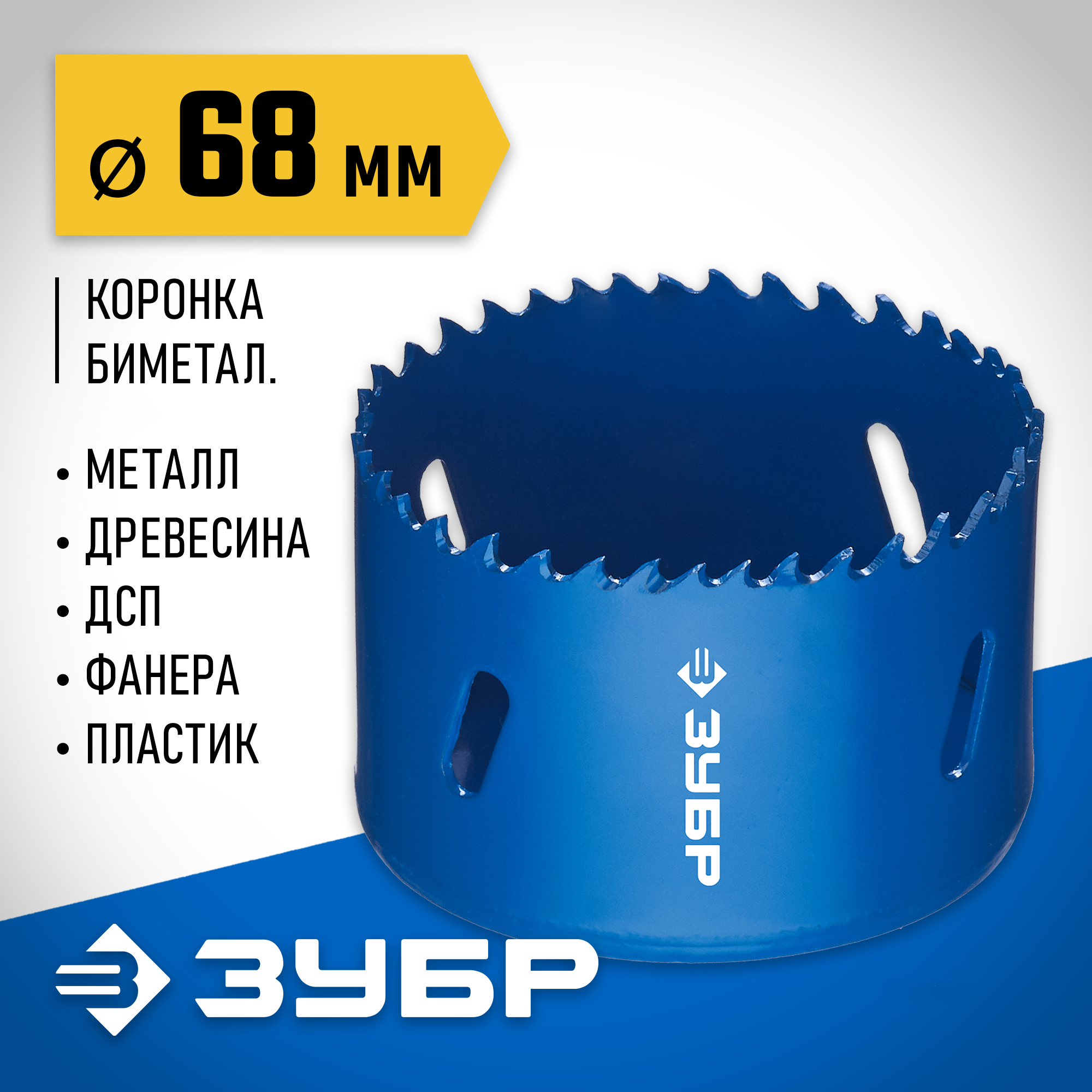 Полное описание товара Коронка биметаллическая, быстрорежущая сталь 68мм (ЗУБР) 29531-068_z01
