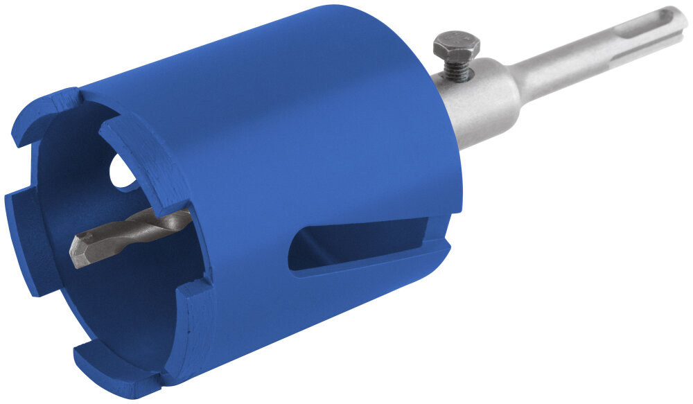 Коронка кольцевая алмазная MOS с центрирующим сверлом и хвостовиком SDS-plus предназначена для безударного сверления отверстий под монтажные коробки в бетоне (в том числе армированном) и кирпиче. При работе требуется водяное охлаждение. Центрирующее сверло позволяет точно позиционировать коронку перед началом сверления и предотвращает ее смещение во время работы. Наконечник сверла изготовлен из композитного карбид-вольфрамового сплава, а режущая кромка коронки покрыта порошком из технических алмазов.