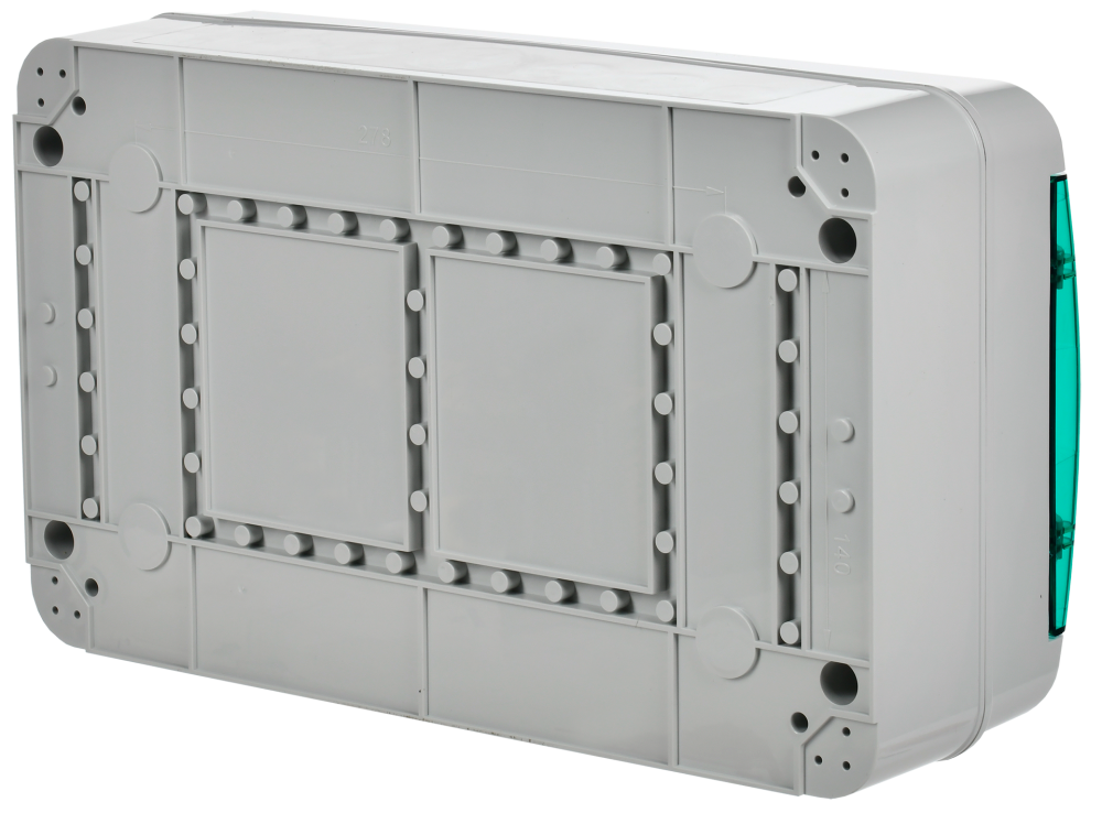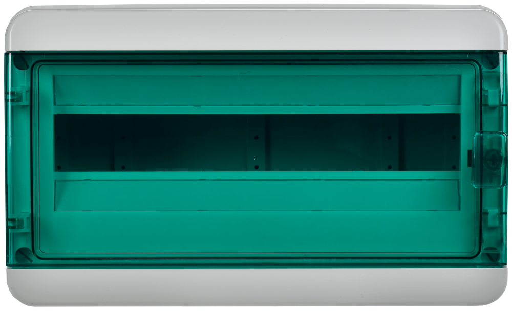 Полное описание товара Корпус пластиковый навесной на 18 модулей КМПн-18 IP65 TEKFOR зеленая прозрачная дверь (IEK) TF5-KP72-N-18-65-K03-K06