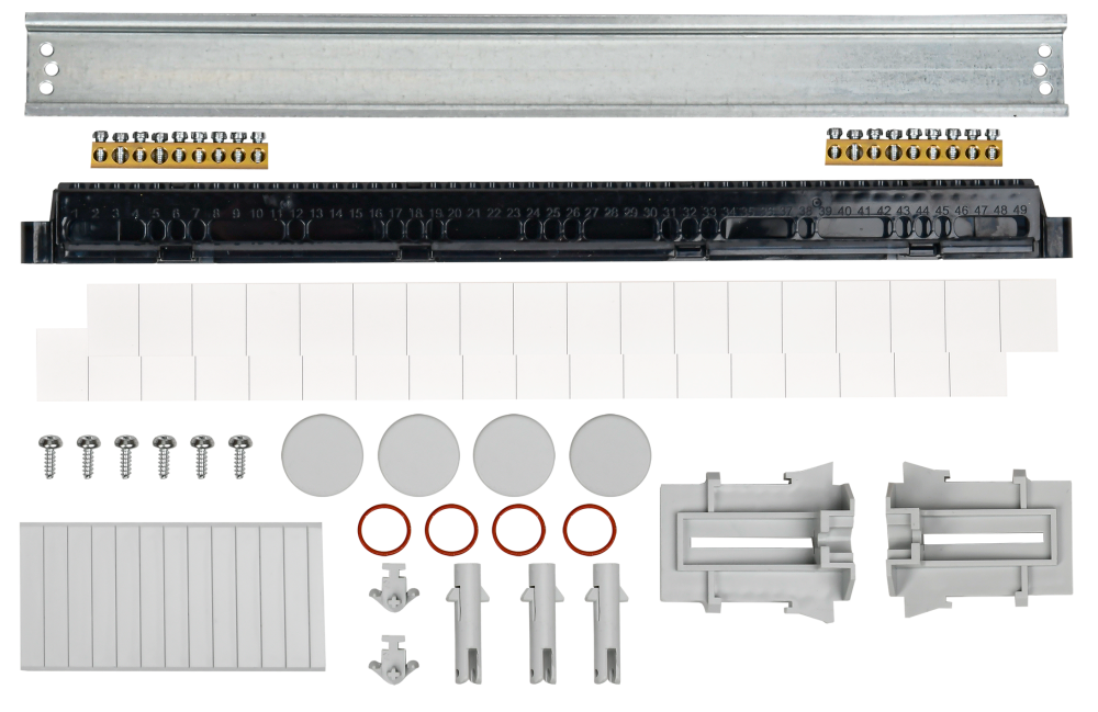 - Преимущества: Просторное основание корпуса позволяет прокладывать провода под DIN-рейкой и по бокам от монтажной рамы.|Суппорт для шин защищает от прикосновений к токоведущим частям, обеспечивая безопасность обслуживания и эксплуатации щита.|Увеличенное расстояние между клеммным блоком и контактной группой автоматов позволяет легко организовать и промаркировать проводники.|Введение проводников реализовано через съемную планку с эластичной мембраной позволяя исключить использование дополнительных сальников.|Лицевые панели снимаются с крышки корпуса и обеспечивают быстрый доступ к установленным элементам.|Крышка корпуса при помощи специальных винтов-шарниров открывается без полного снятия, упрощая обслуживание щита.|Дверь имеет возможность установки металлического замка (приобретается отдельно) при необходимости ограничения доступа в щит.