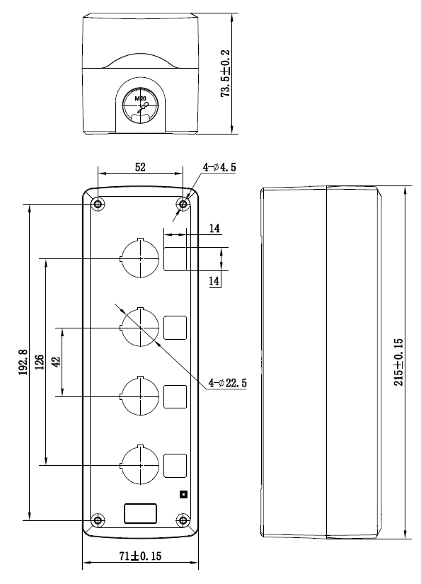 Корпус под кнопочный пост на четыре места позволяет установить до четырех кнопок или переключателей, создавая удобную и организованную рабочую среду. Прочные материалы и надежная защита от механических повреждений увеличивают срок службы компонентов и упрощают их эксплуатацию. Отлично подходит для более сложных систем управления с несколькими функциями.