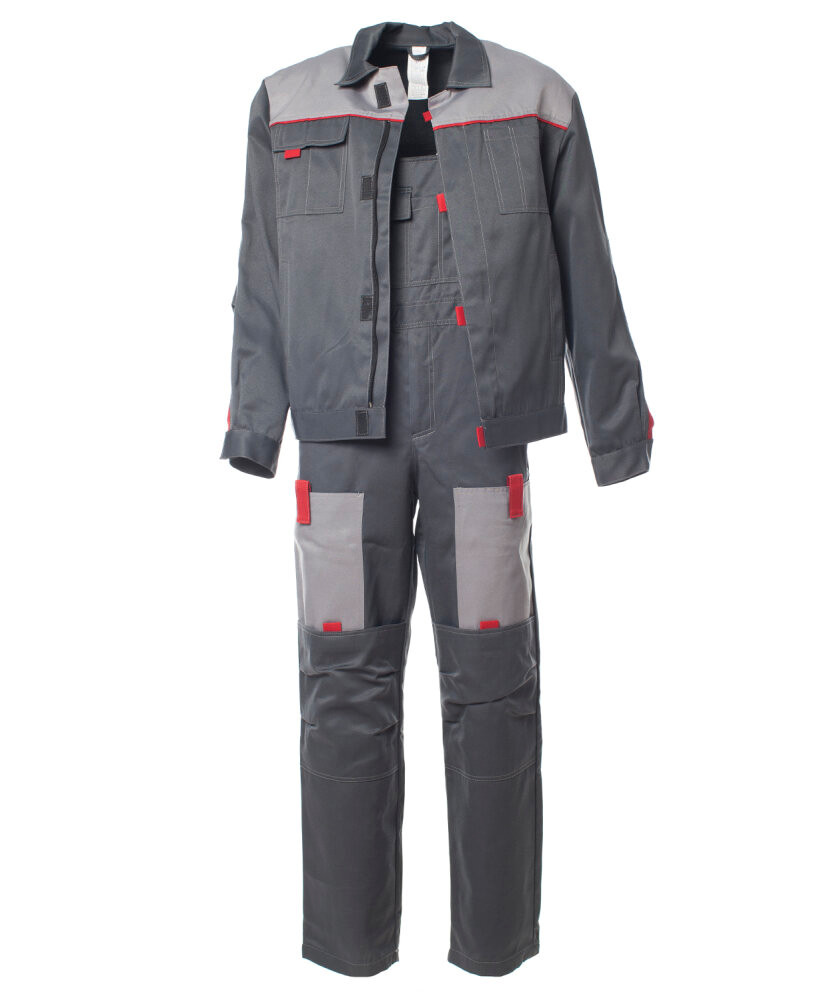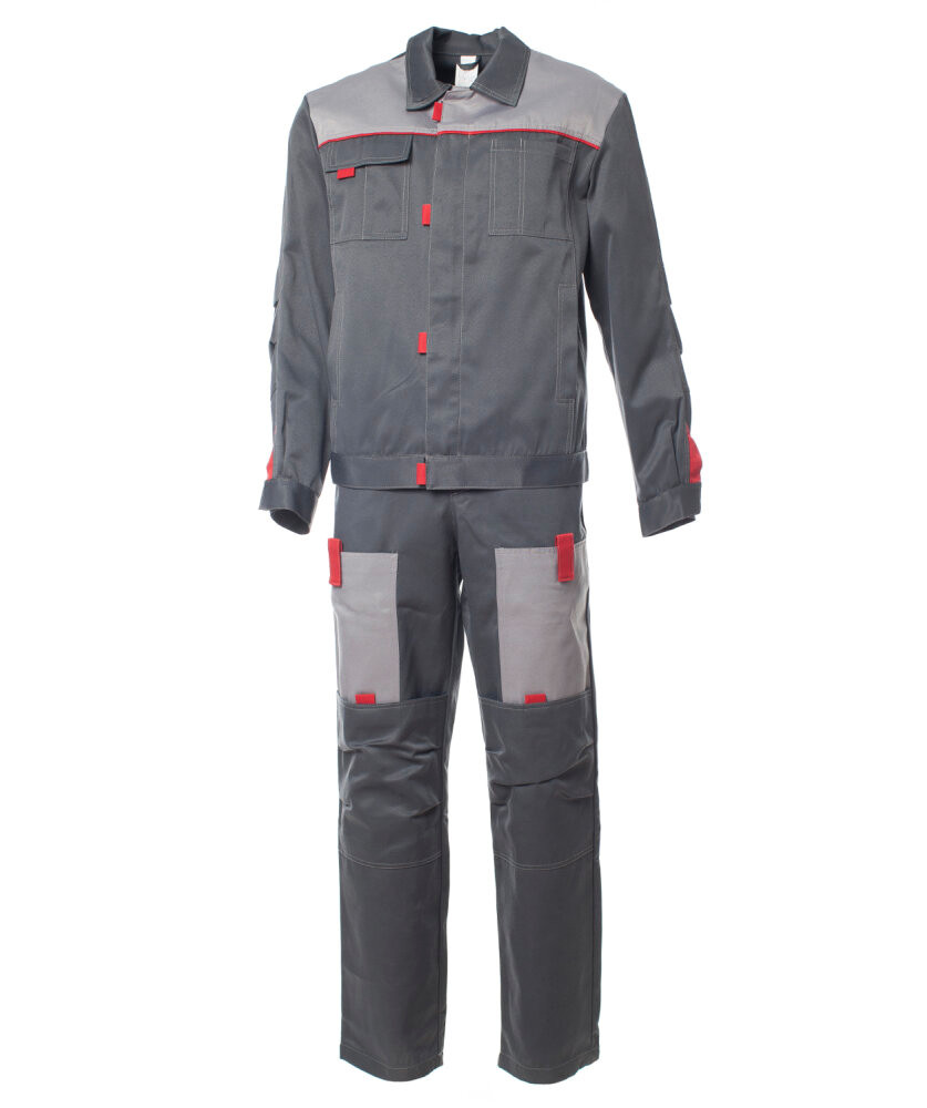 Костюм мужской ФАВОРИТ-2 куртка, полукомбинезон, цвет тёмно-серый с серым и красным, р-р 56-58 112-116/182-188 (Эталон-Спецодежда) 114714