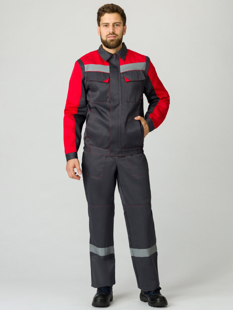 Полное описание товара Костюм Сфера NEW (ткань Смесовая,210) полукомбинезон, темно-серый/красный, 44-46/ 170-176 (Факел) 87468102