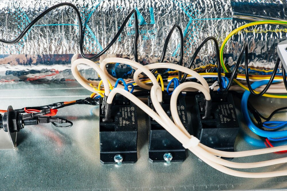 - Комплектность: 1. Выходной патрубок G1 2. Термовыключатель ТК-20 3. Колба котла 4. Предохранитель для подключения циркуляционного насоса 5. Выключатели 6. Термостат 7. Реле 8. Входной патрубок G1 9. Колодки для подключения питания и циркуляционного насоса 10. Блок ТЭН