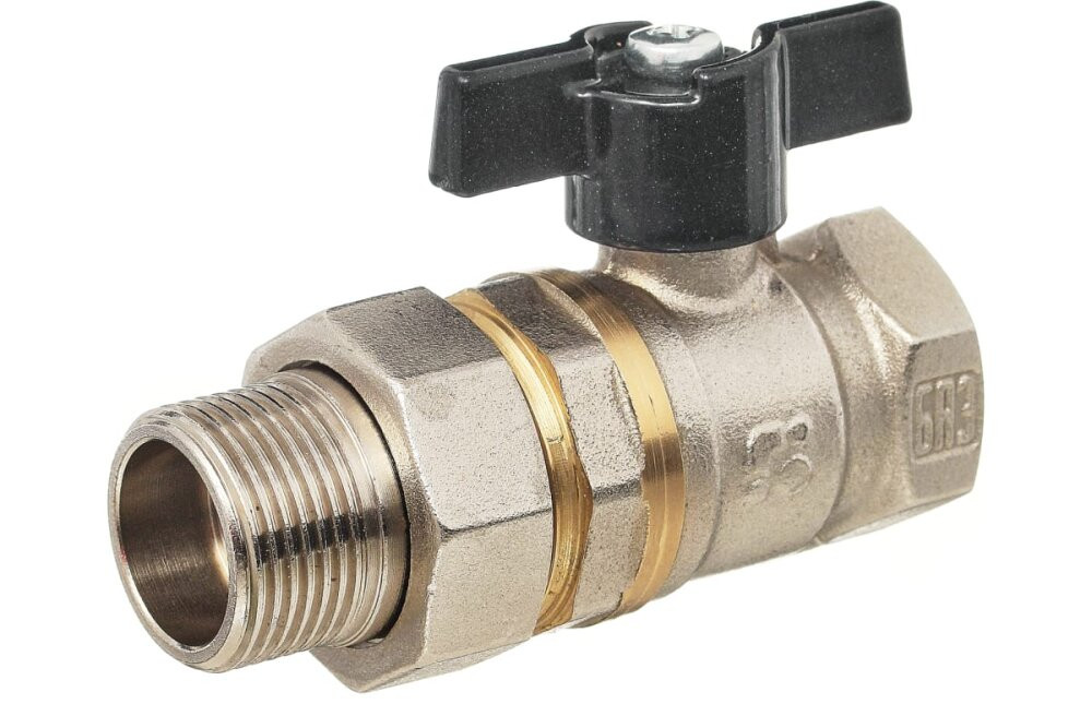 Кран шаровой американка Ду15 А31/1 прямой бабочка никель PN40 (БАЗ) БАЗ.А.А31.1.15.НЛМ.PN40