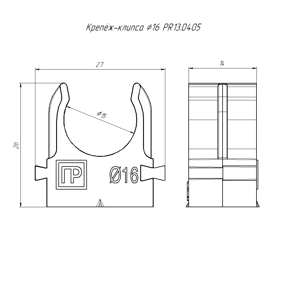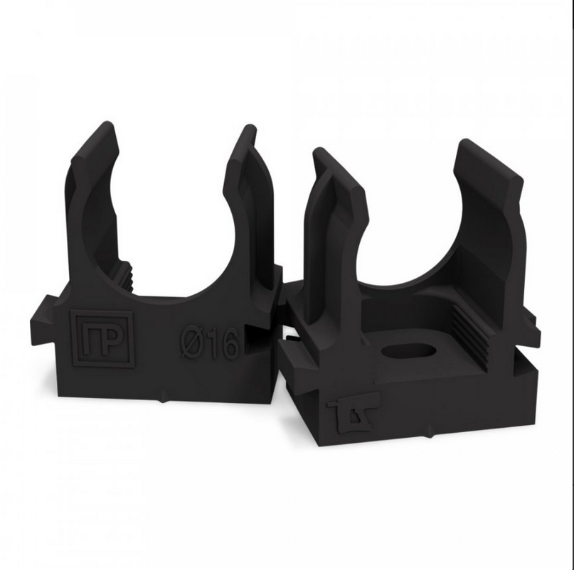 Полное описание товара Крепеж-клипса для труб атмосферостойкая для прямого монтажа черная в п/э d16 мм (100шт/1100шт уп/кор) Промрукав (Промрукав) PR13.0405