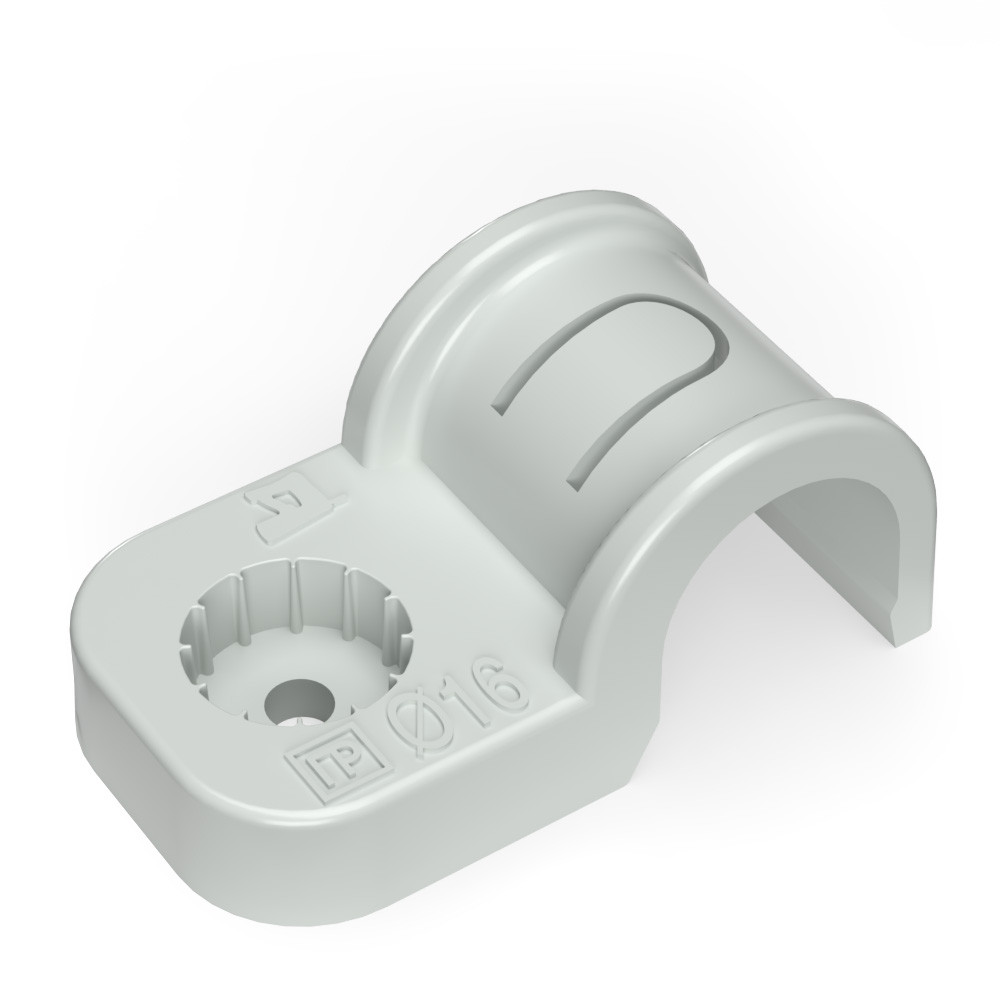 Крепеж-скоба пластиковая односторонняя для прямого монтажа серая в п/э д16 (50шт/750шт уп/кор) (Промрукав) PR13.0368