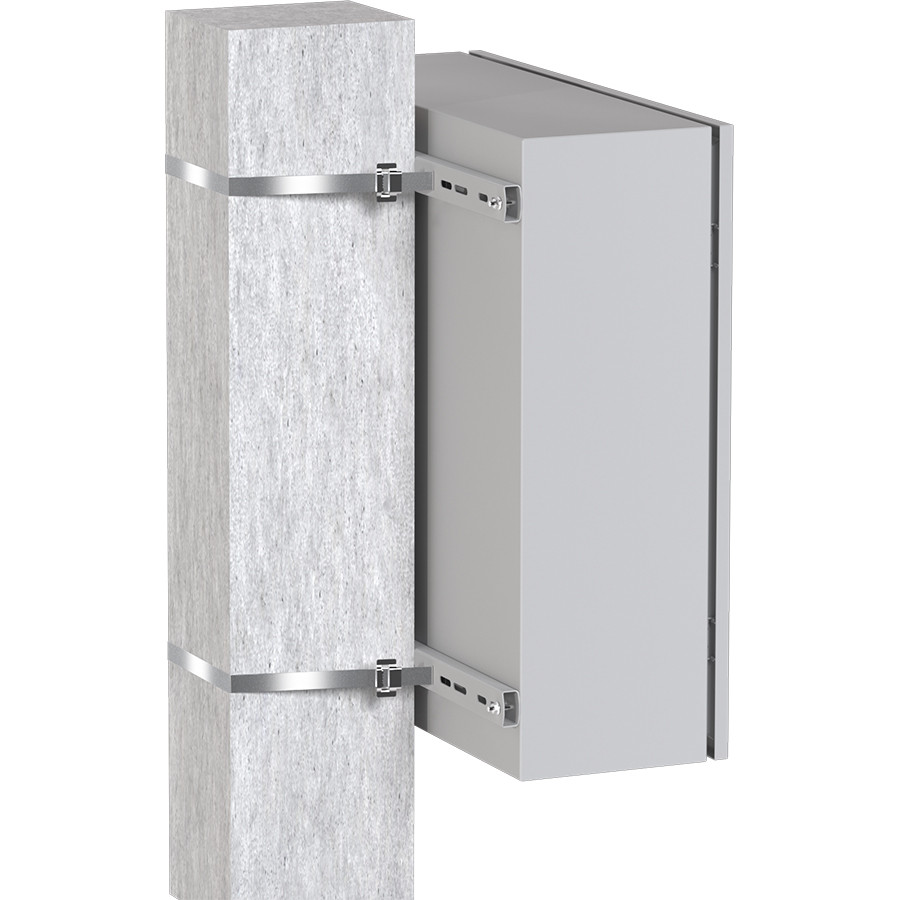 Комплект для монтажа к столбу представляет собой крепежно-монтажный комплект и универсальную конструкцию для крепления к столбу любых навесных щитов., а также устройств, предназначенных для поддержания в шкафах требуемой температуры воздуха.