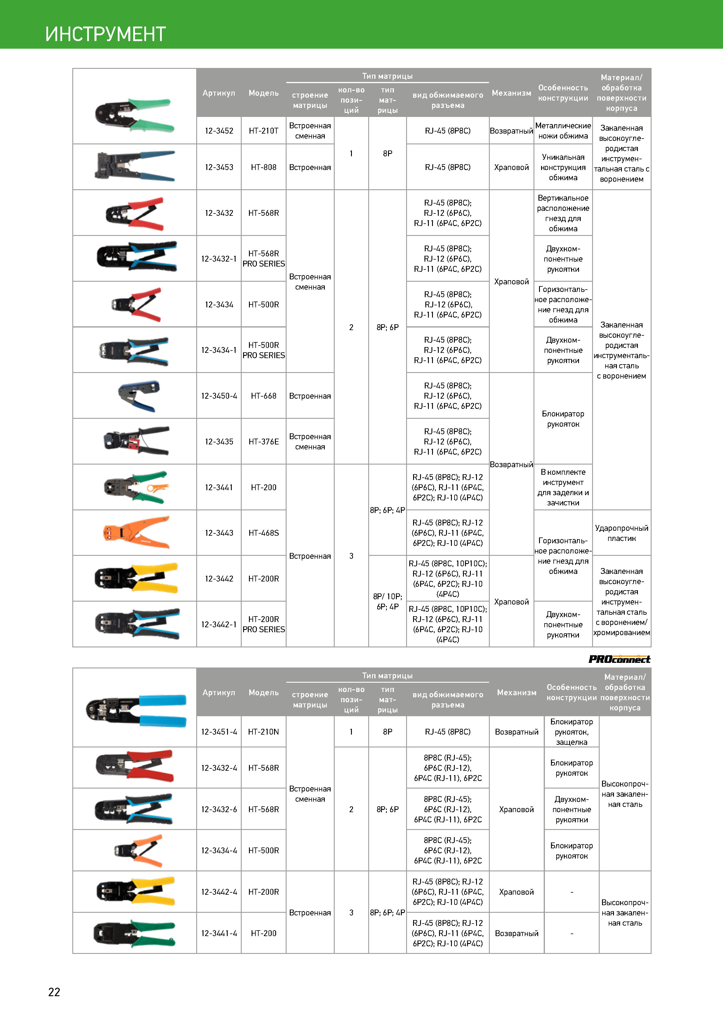 Полное описание товара Кримпер для обжима 8P8C / 6P6C (ht-568R) (REXANT) 12-3432
