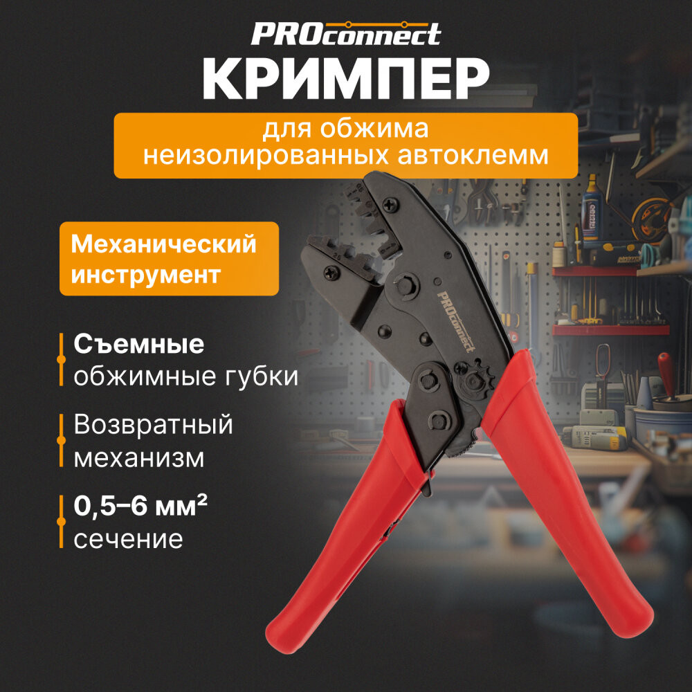 Кримпер HT-236C для обжима неизолированных автоклемм 0,5-6 мм2 (ProConnect) 12-3001-4