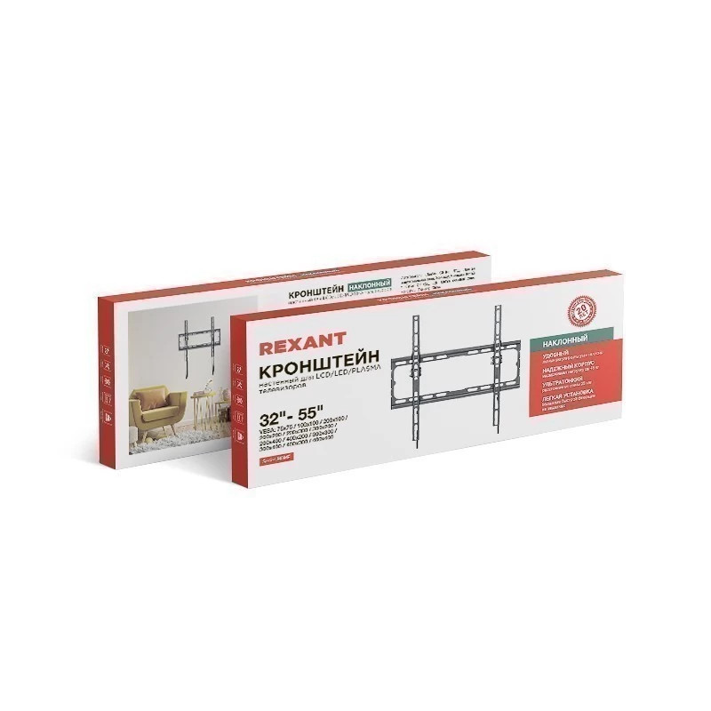 Полное описание товара Кронштейн для телевизора 32-55 наклонный с б ыстрой фиксацией Home, (REXANT) 38-0330-1