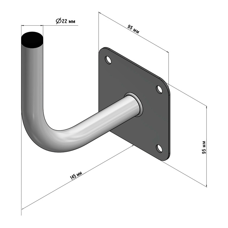 Эфирный кронштейн используется для крепления телевизионных антенн на балконы, оконные рамы, стены строений, фасады зданий и сооружений. Выполнен в Г-образной форме. Крепление антенны на кронштейн улучшает качество принимаемого сигнала и предотвращает появление помех, которые образуются от электронных устройств, стен и крыш. Кронштейн изготовлен из стали и окрашен специальной порошковой краской, что обеспечивает защиту от внешних факторов и долгий срок службы в неблагоприятных условиях окружающей среды. Изготовлен с учетом специфики российского климата. Вылет от стены составляет 14,5 см. Место крепления антенны – круглая труба диаметром 22 мм (толщина стенки 1,5мм).