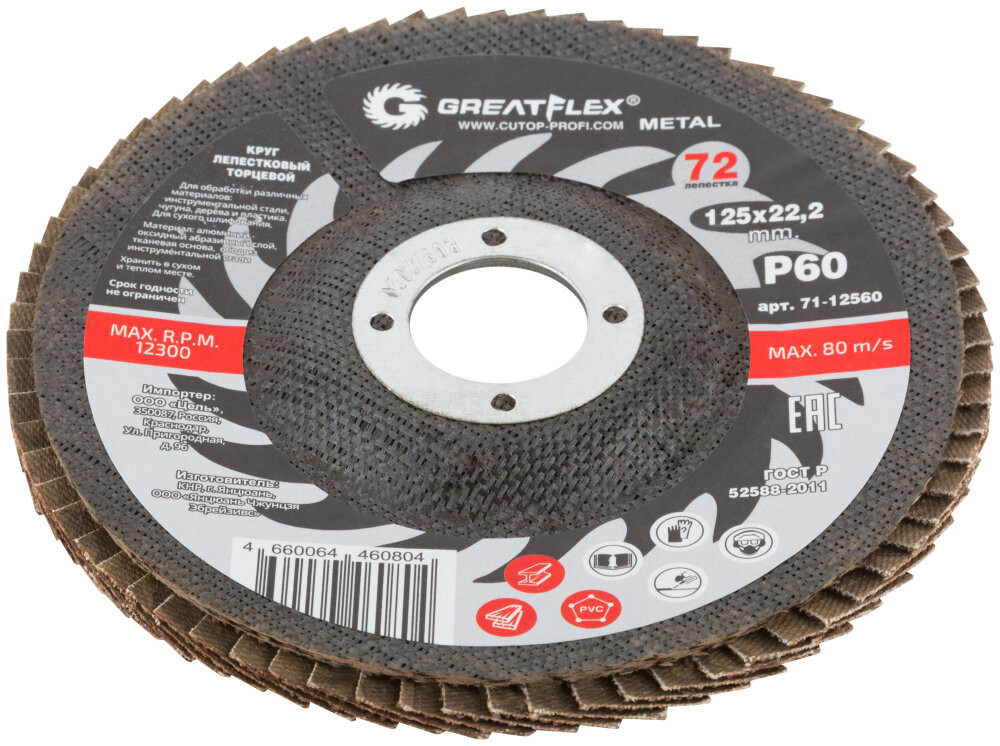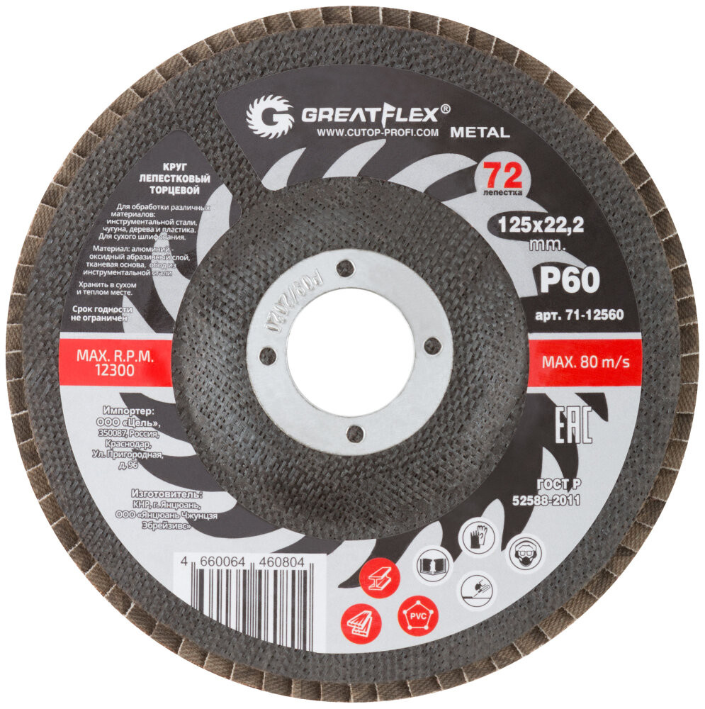 Круг лепестковый торцевой GREATFLEX (72 лепестка) 125x22.2 мм, Р60 (Greatflex) 71-12560
