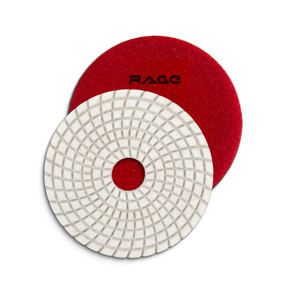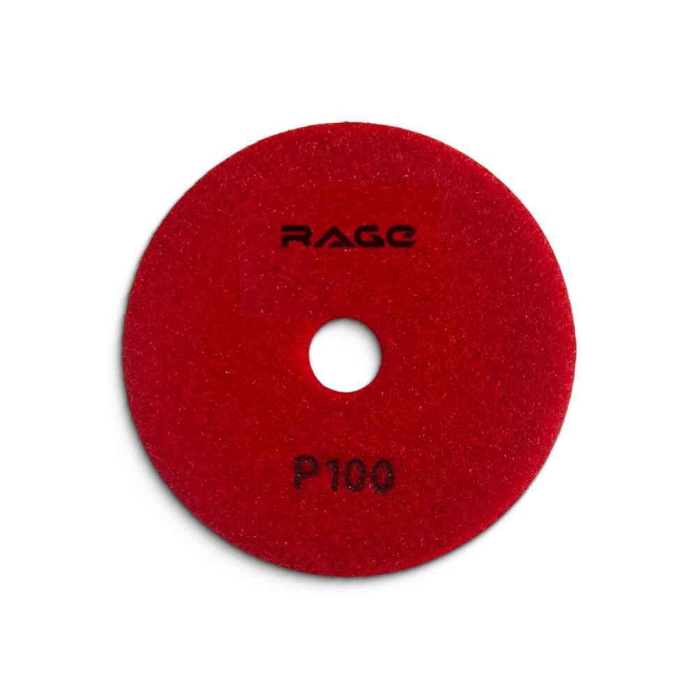 Круг шлифовальный алмазный RAGE by VIRA 100 мм P100. Абразивный круг из полимерной связки с алмазной крошкой предназначен для обработки всех разновидностей искусственного и натурального камня, включая высокопрочные породы, такие как мрамор и гранит. Данный тип хорошо подходит для выполнения точных работ. Круг легко устанавливается на опорную чашку и заменяется, по необходимости, на подобный или на круг с другой зернистостью благодаря креплению липучке. Используется с эксцентриковыми шлифмашинками, УШМ, дрелями. Высокий ресурс и надежность этого инструмента, дают возможность получить гладкие поверхности на большом объеме обрабатываемых материалов. Предназначен для мокрого шлифования (с водяным охлаждением).