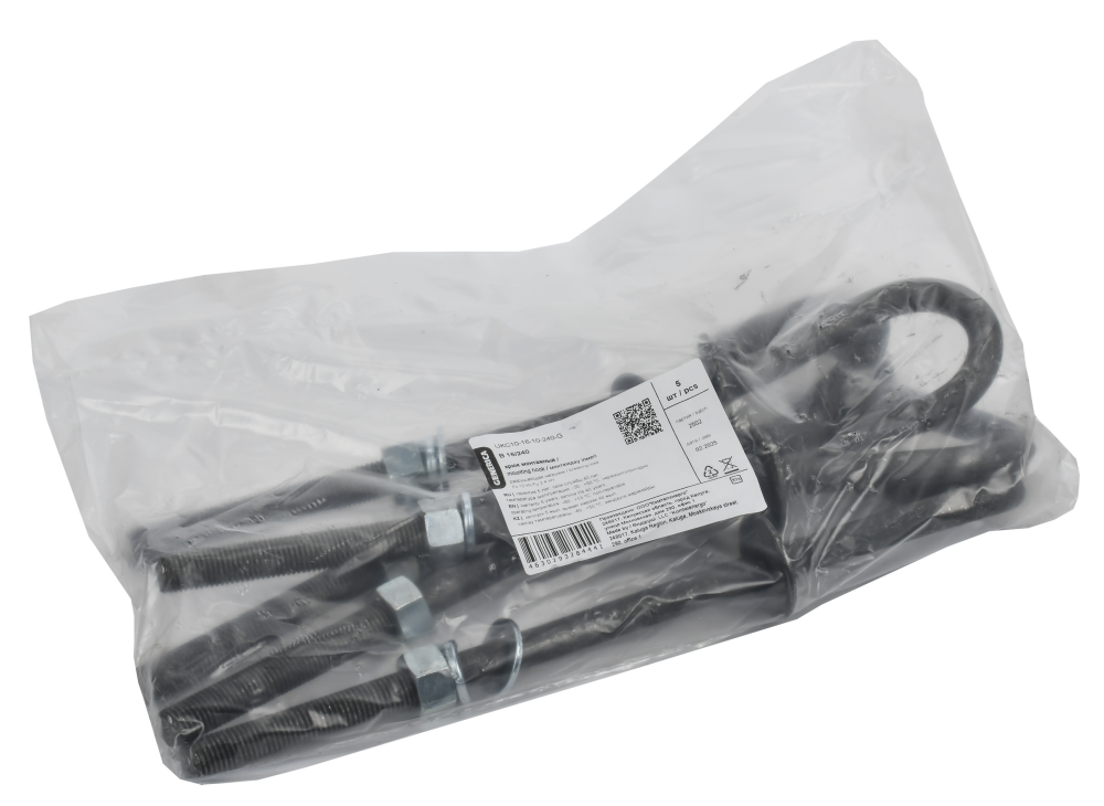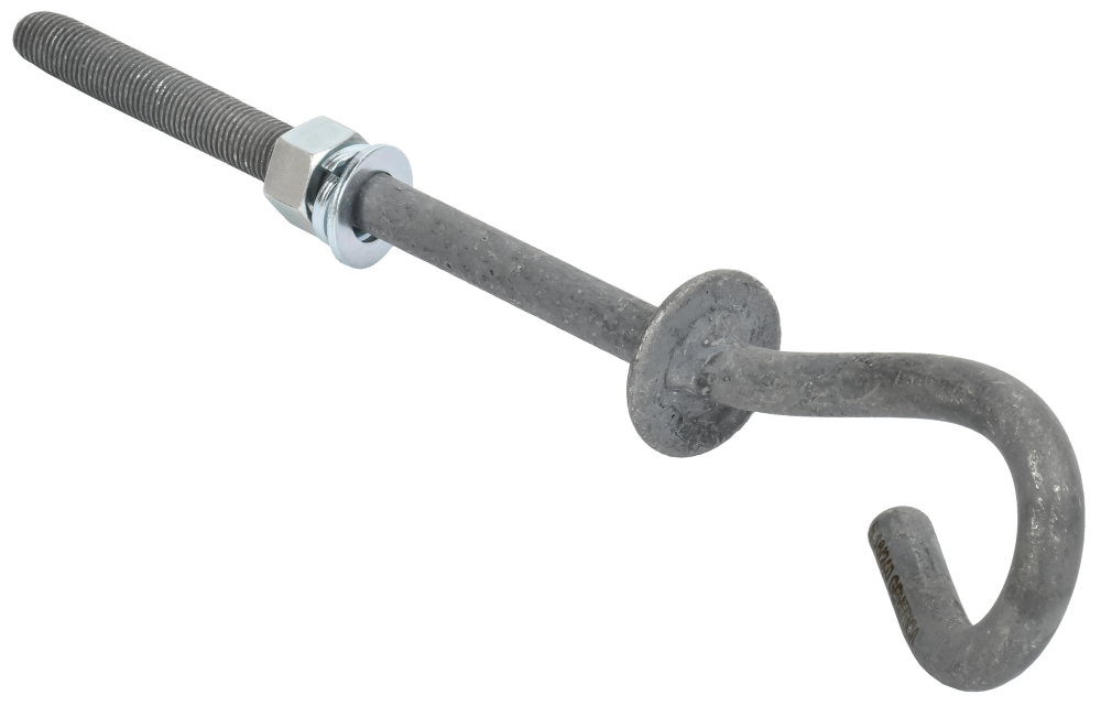 Крюк монтажный сквозной B 16/240 применяется для крепления анкерных или поддерживающих зажимов на железобетонных, металлических или деревянных опорах с монтажными отверстиями.