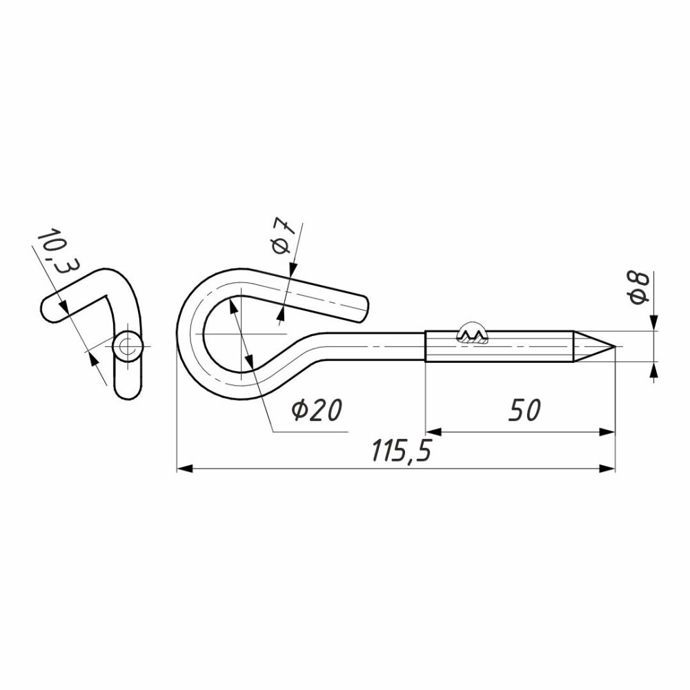 - Преимущества: Крюк выполнен из оцинкованной стали повышенной прочности с высокой устойчивостью к коррозии. Толщина цинкового покрытия более 60 мкм. Соответствует требованиям СТО ПАО Россети СТО 34.01-2.2-003-2015 и ГОСТ 9.306-85, ГОСТ 9.307-89.