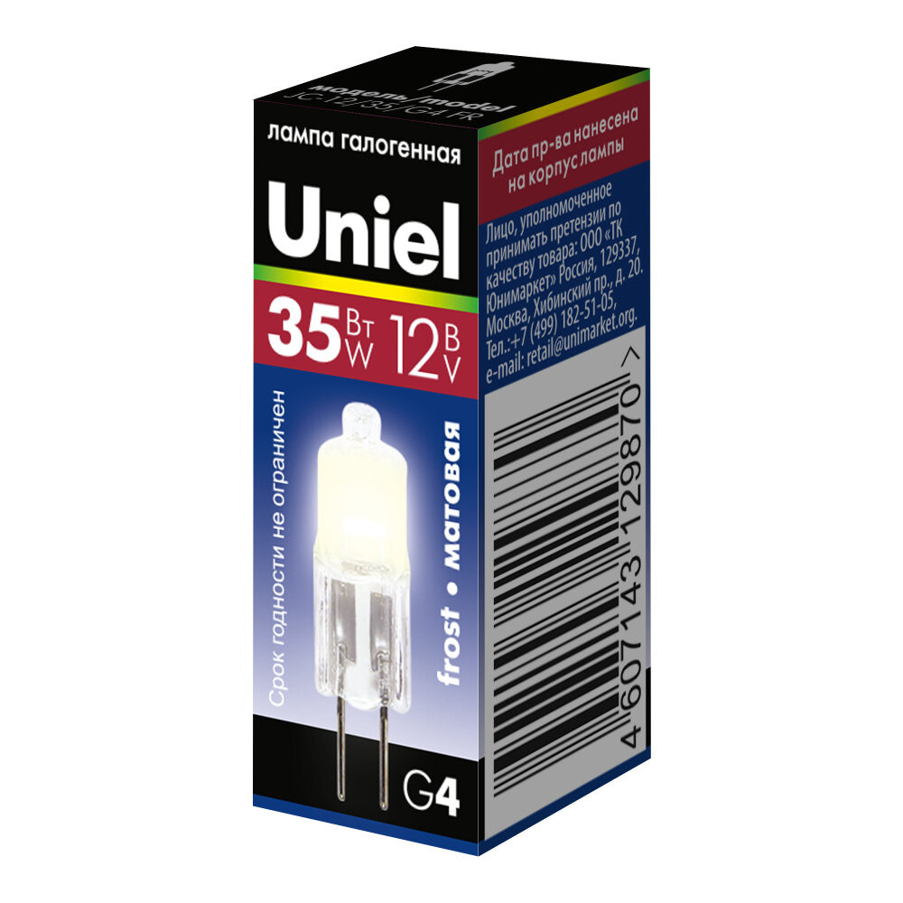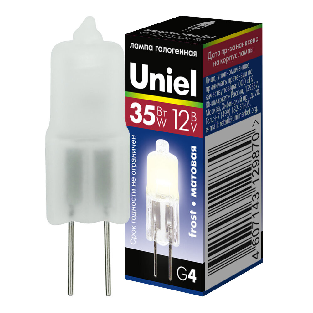 Лампа галогенная матовая капсульная 12 В 35 Вт цоколь G4 Картонная коробка JC-12/35/G4 FR (Uniel) 824