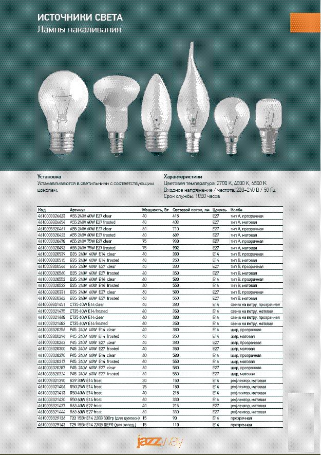 ВСЕ ЛАМПЫ от JazzWay - Характеристики