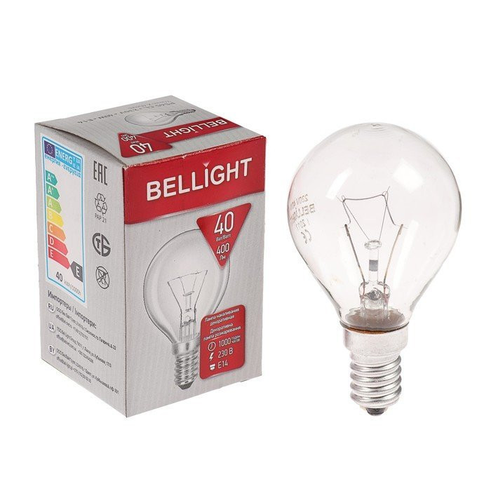 Полное описание товара Лампа накаливания декоративная ДШ 40Вт 230В Е14 (шар) цветная упаковка (BELLIGHT)