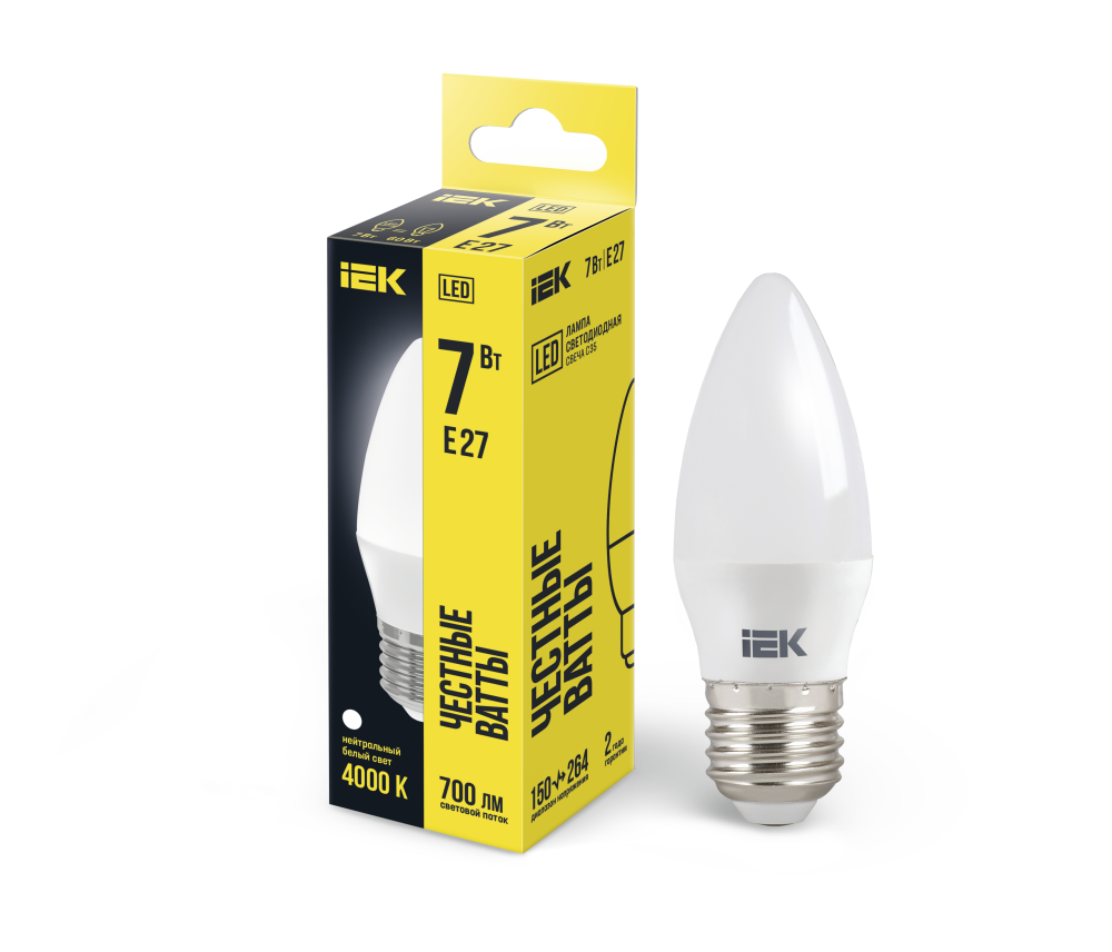 Полное описание товара Лампа светодиодная C35 свеча 7Вт 230В 4000К E27 (IEK) LLE-C35-7-230-40-E27