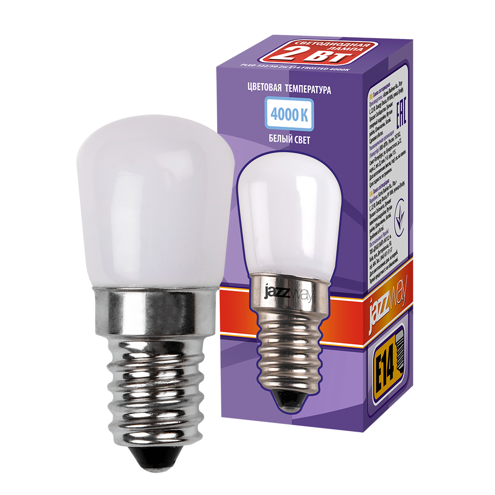 Полное описание товара Лампа светодиодная для холодильников LED 2Вт T22 2w E14 матовый белый 160Лм (JazzWay) 5001985