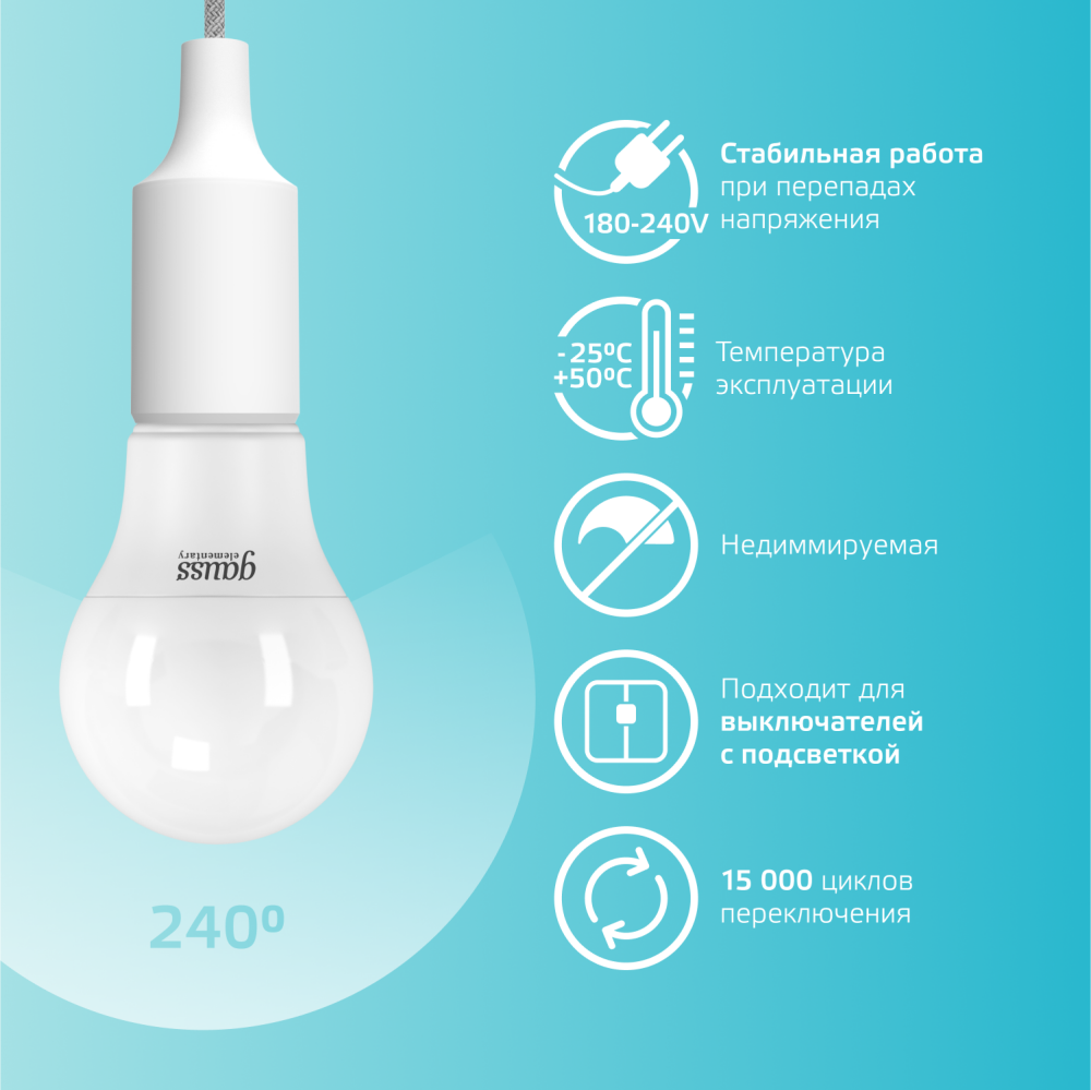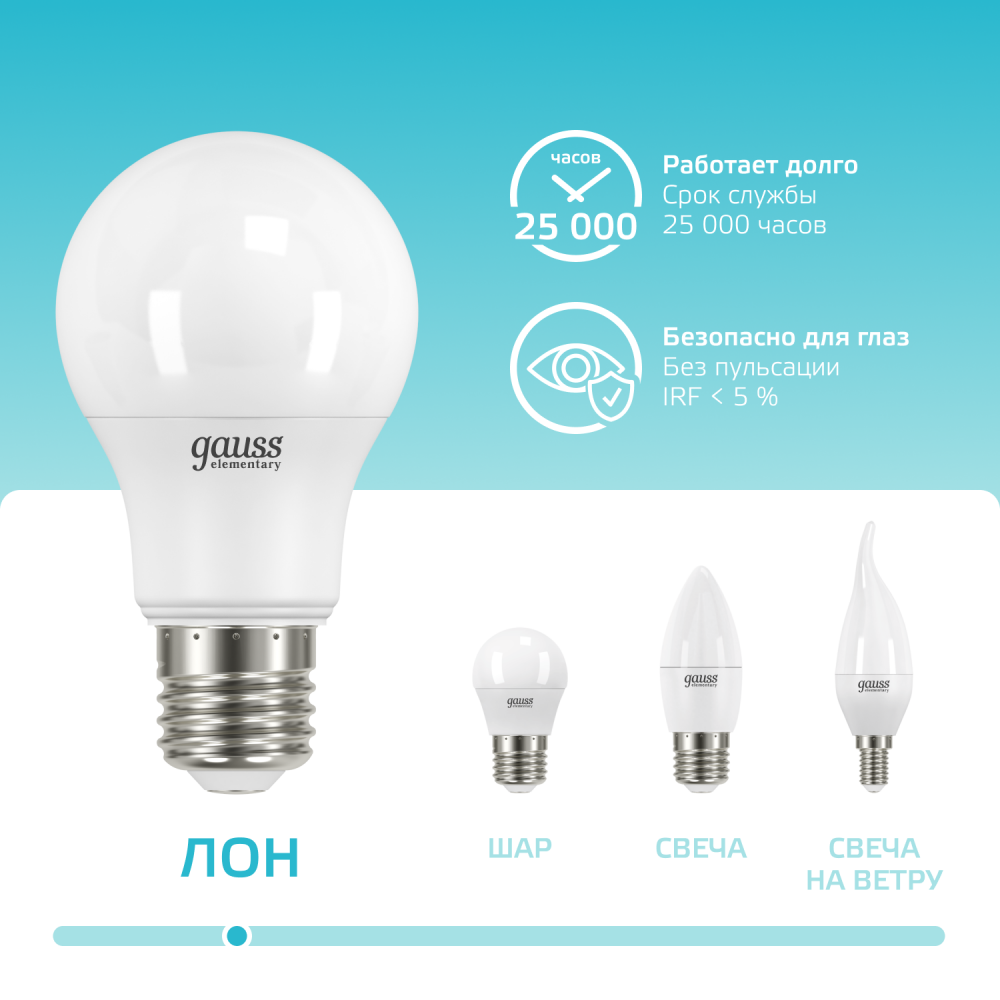 Светодиодные лампы Gauss Elementary – вечная классика, которая является энергосберегающей заменой обычным лампам накаливания. Модели, представленные в ассортименте бренда, обеспечивают пространство мягким не мерцающим светом и обладают всеми техническими характеристиками европейского уровня. В линейке представлены модели разных форм, высоких мощностей и размеров. Равномерное распределение света создает зрительный комфорт в любом помещении. Данная серия ламп создана для массового потребителя и имеет самое лучшее соотношение цена-качество.